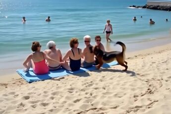 The friends were relaxing on the beach when suddenly a dog ran up to them and started barking loudly