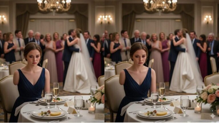Sophia stood frozen at the entrance of the grand hall, her single hand gripping her invitation tightly. The room buzzed with jazz melodies, laughter, and the clinking of glasses, yet all eyes seemed elsewhere. Only one waiter, with a subtle nod, guided her toward a solitary table tucked beneath a drooping palm . A wrinkled tablecloth, an empty chair — this was her place.